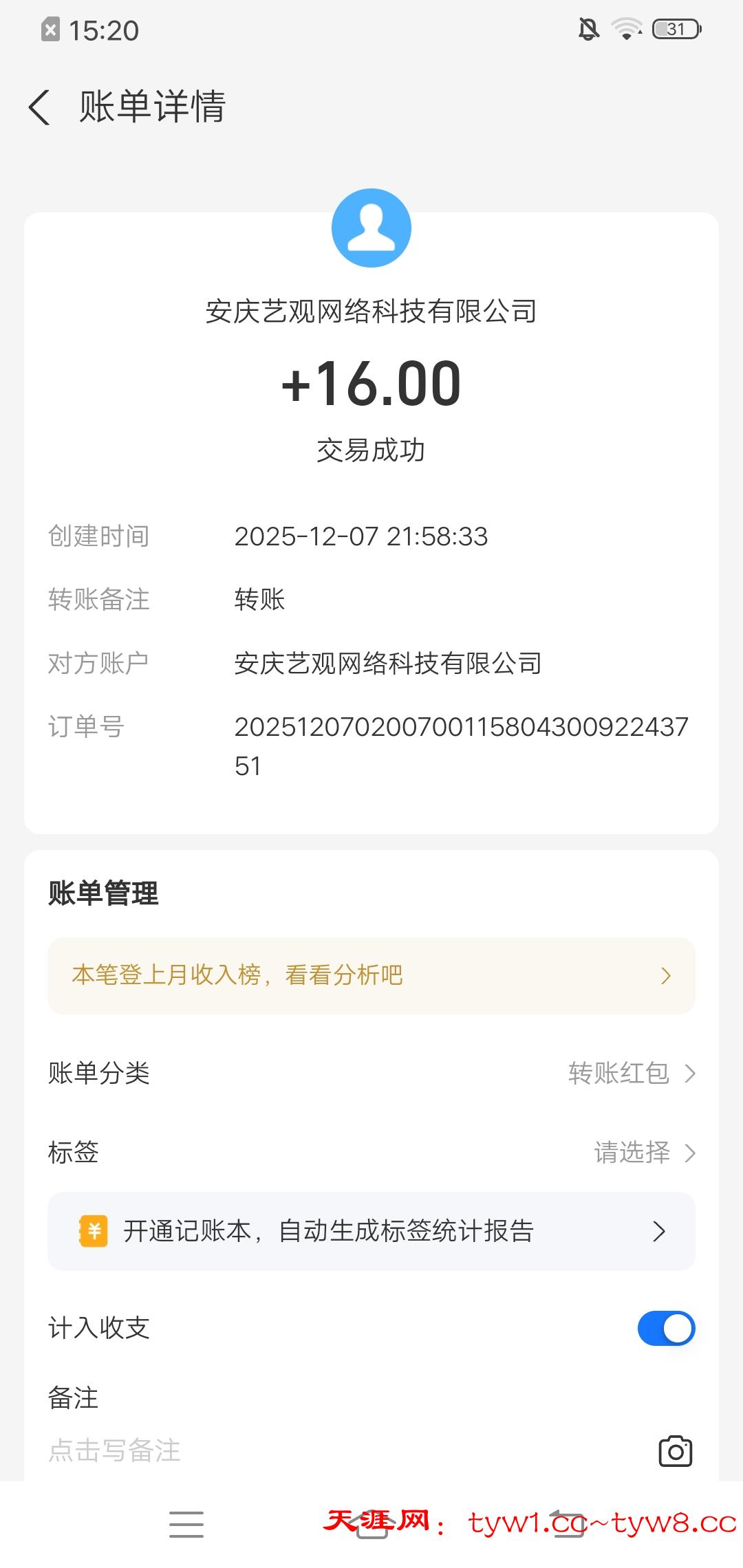 到账15