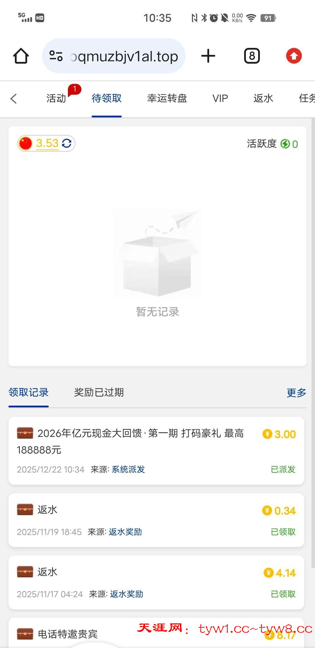玩过登陆上去领,我没充值过,地址是2008.com。