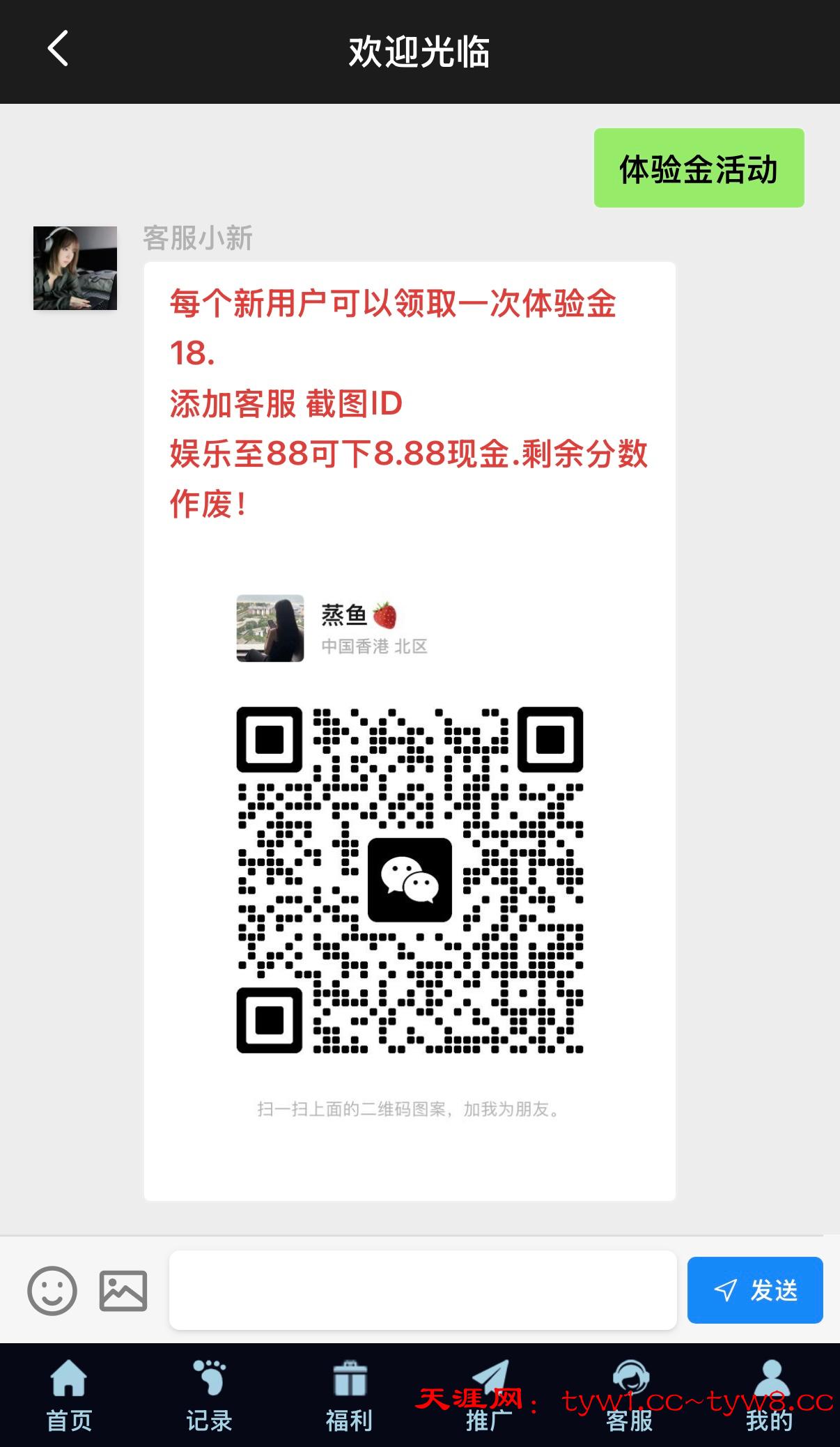 扫码登陆找客服领18体验金