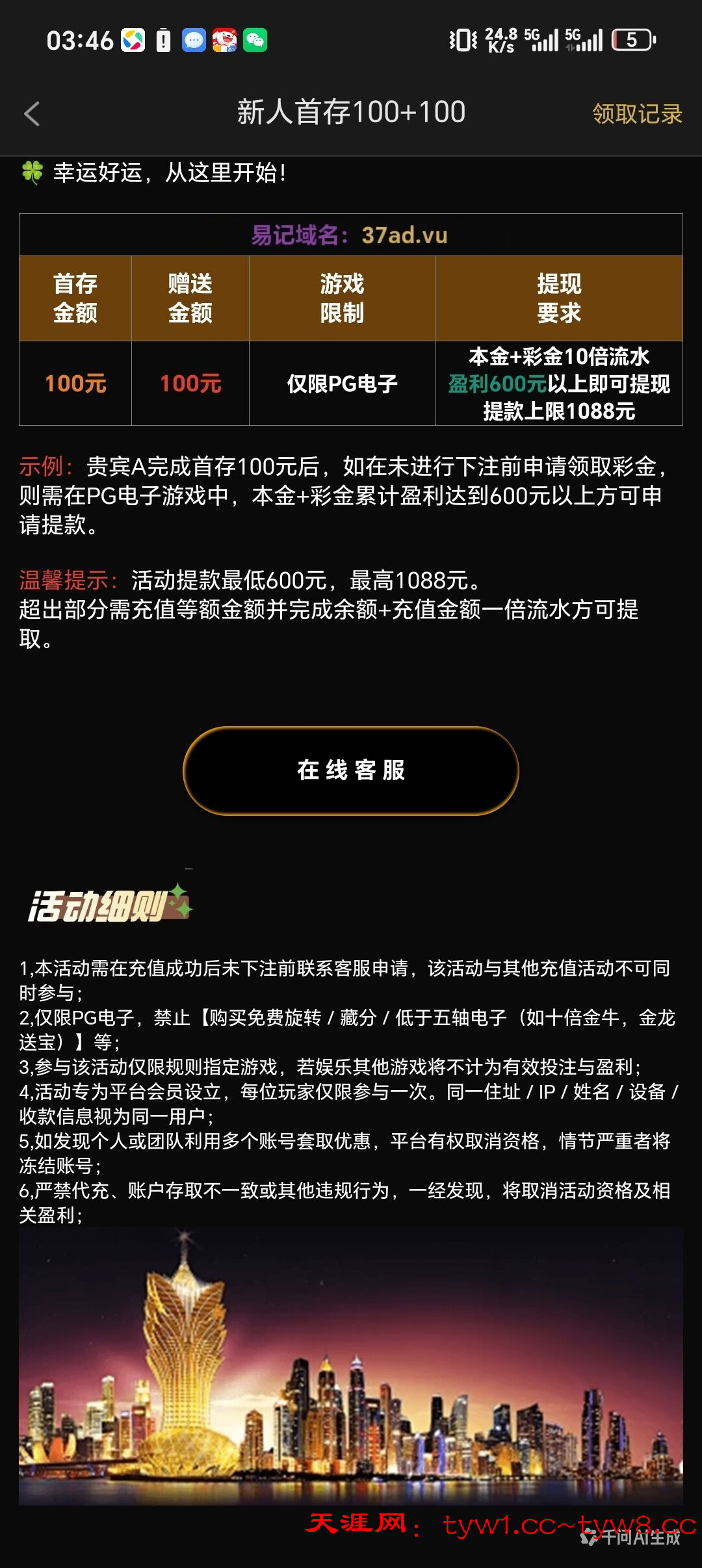 可以,100+100只打了300流水,但是1块反水进胡直接爆400