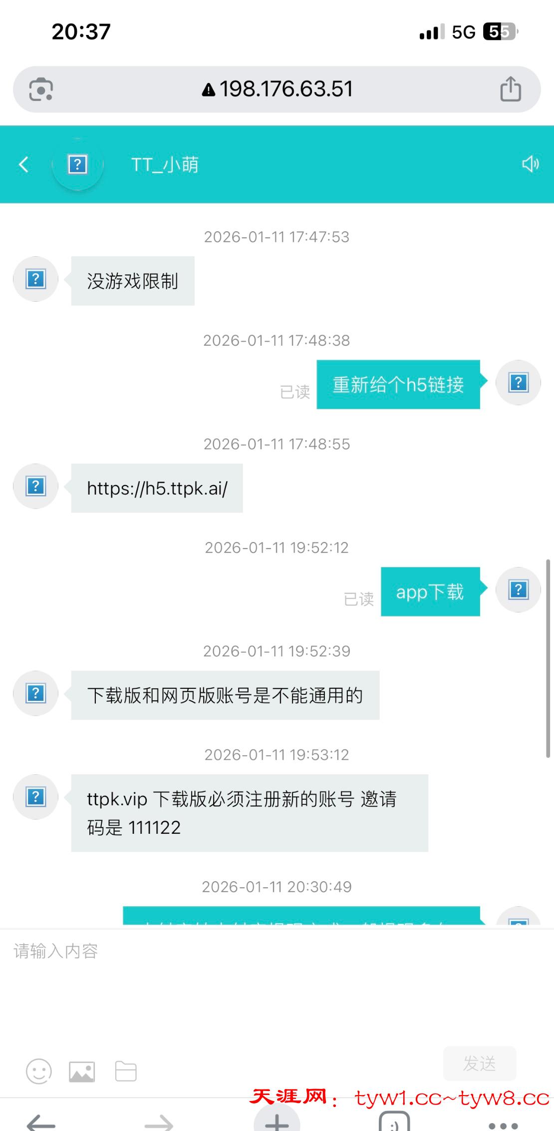 https://h5.ttpk.ai/,电话特邀来的,漏接电话试试。电子没水,我剩下4u的时候去德扑磨2小时才够流水。邀请码111122