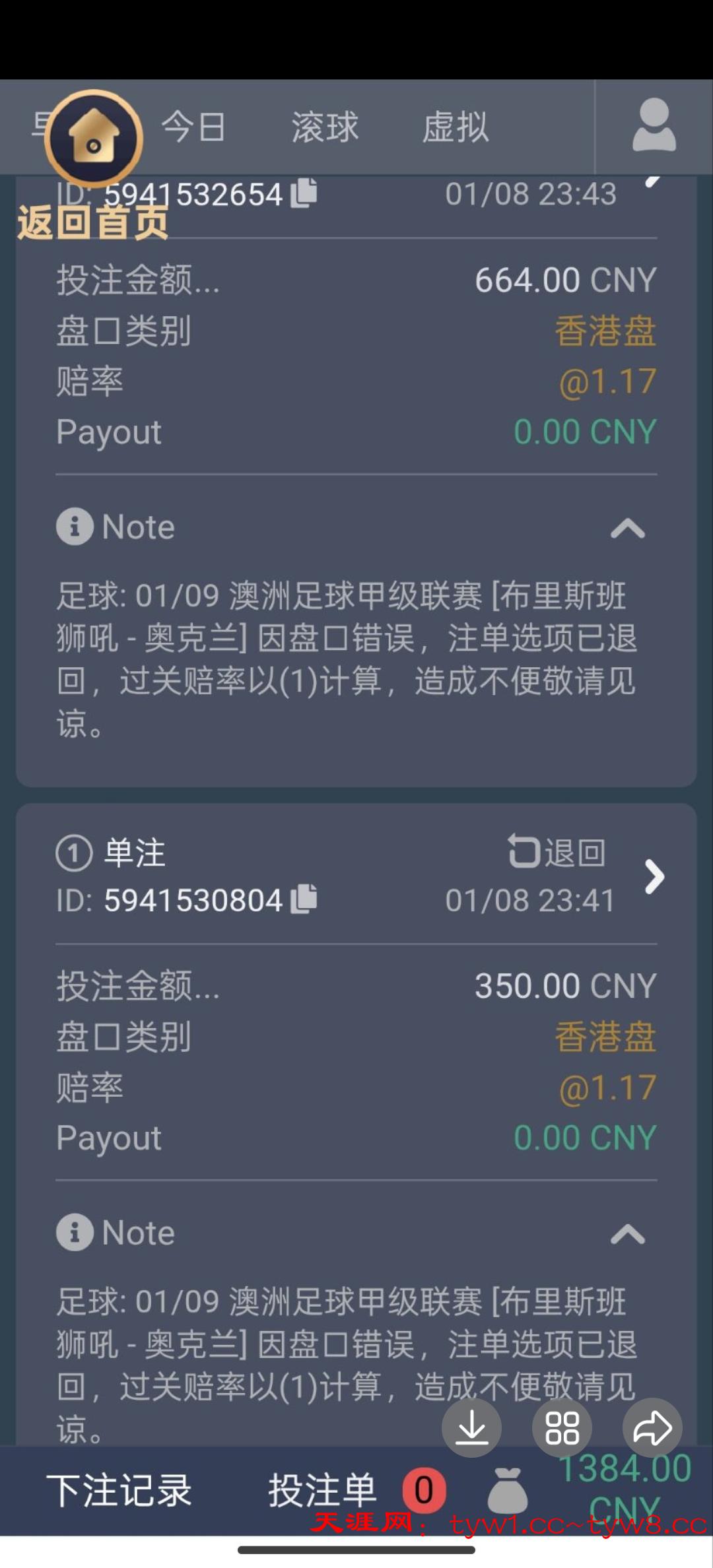 盘口显示错误,某时段的投注单会全部退回