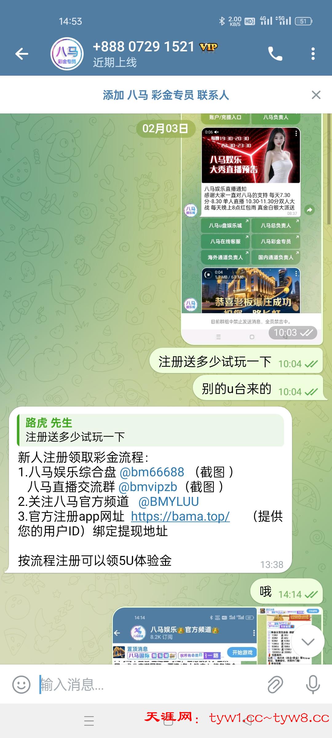 客服资料上面有频道,进频道随便截图一张给他注册送多少,别直接问,不然可能不给能不给
