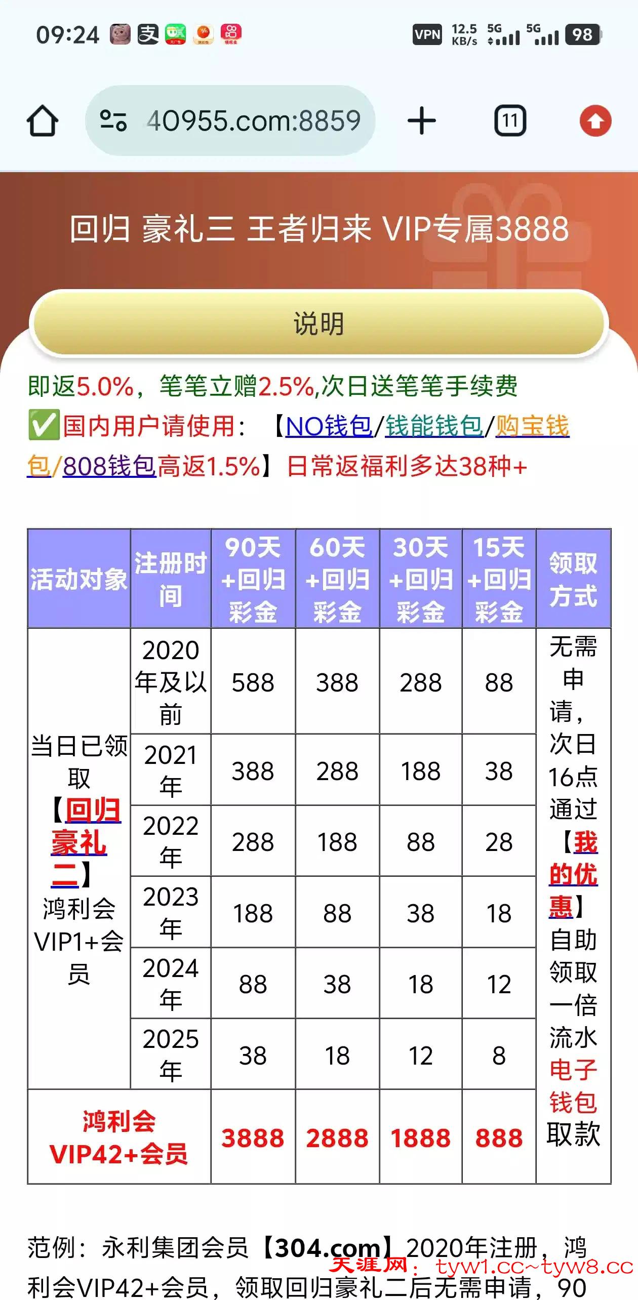 304.com 没充值 回馈了两个5