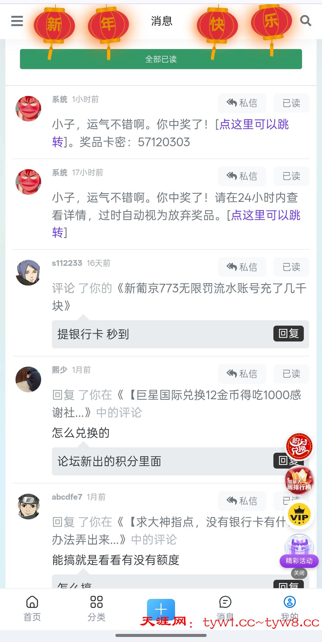 • 天涯论坛我期期中奖,中的心烦 12天前