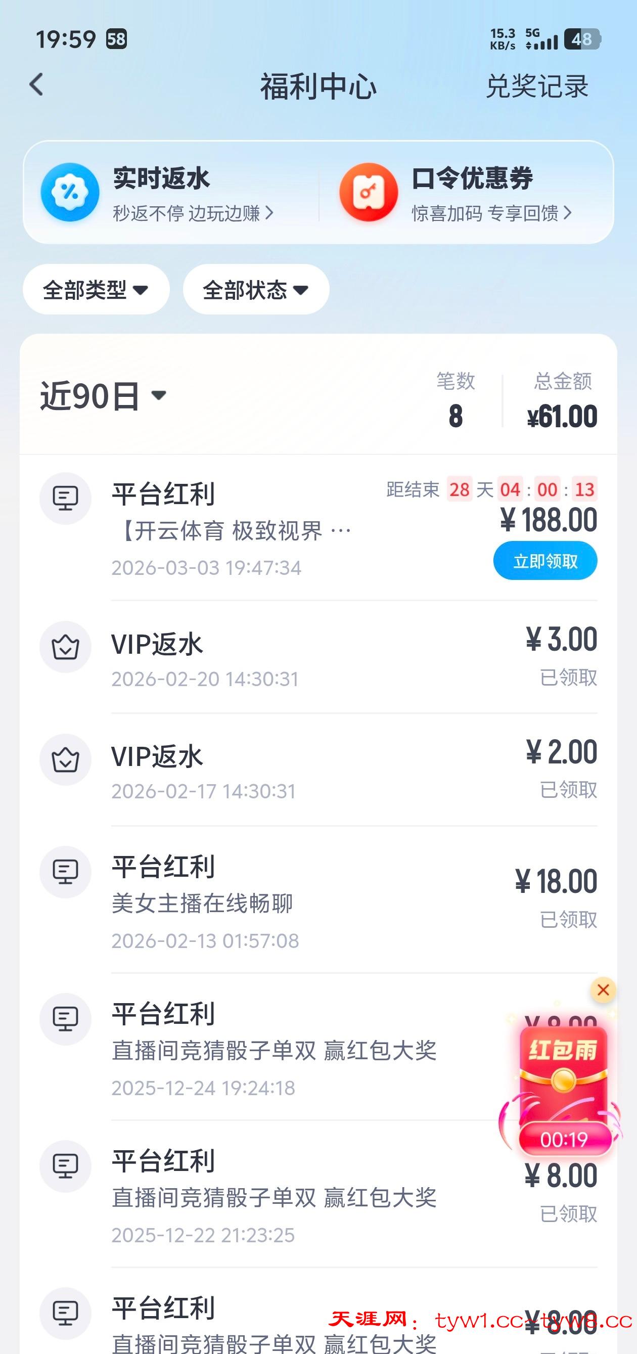送了188元6倍水,已提款得吃