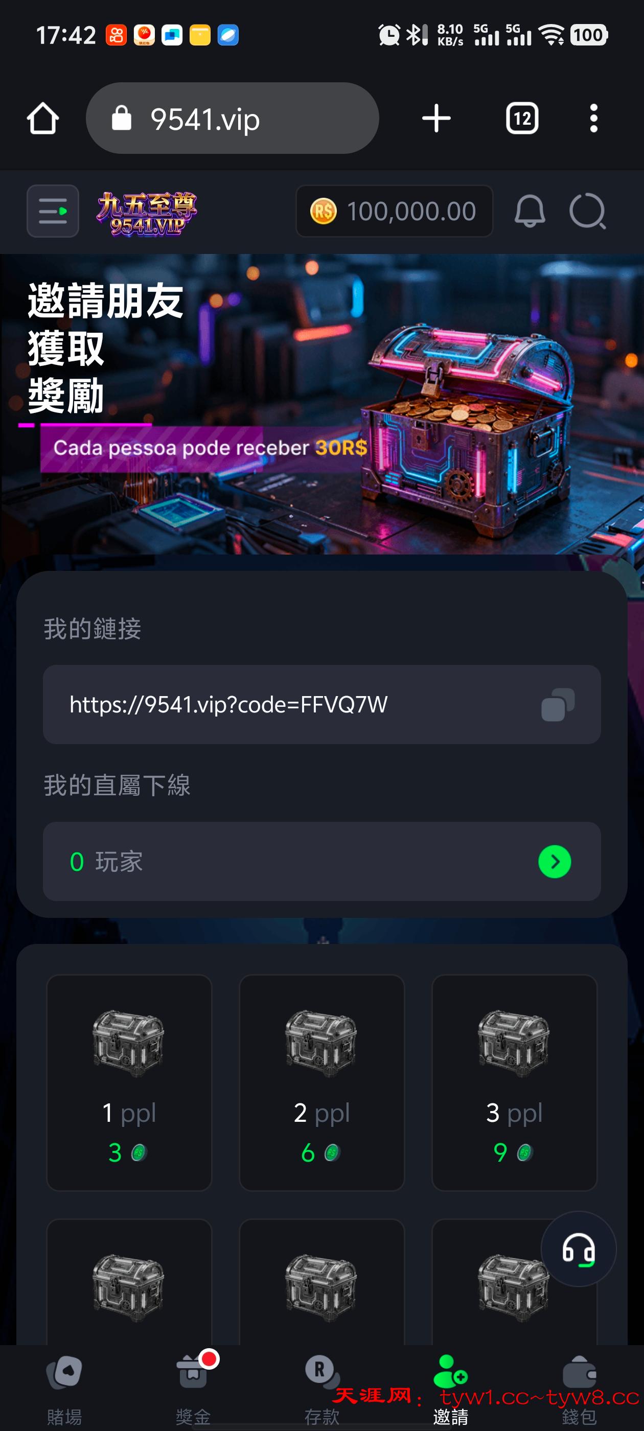 领取条件:每日先将 100,000 元体验金输完