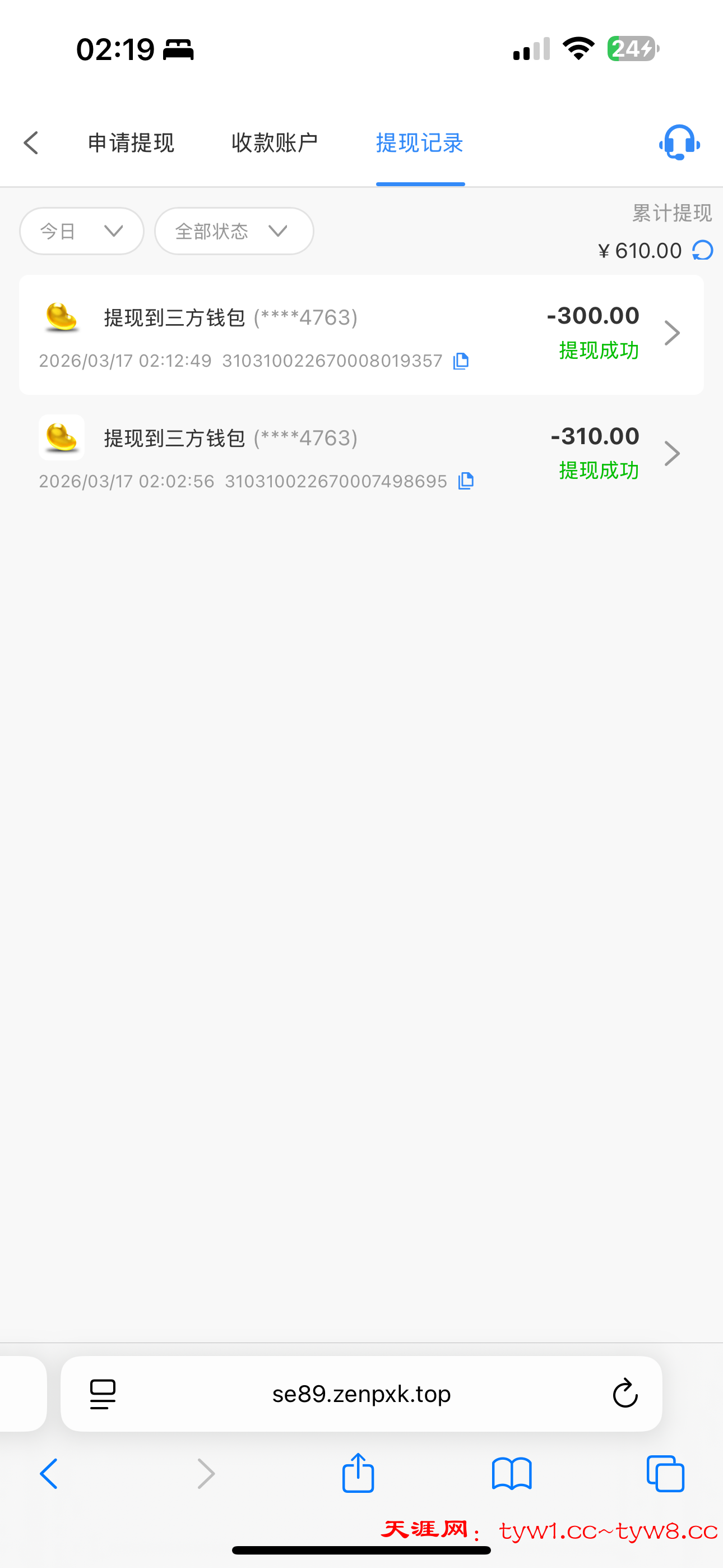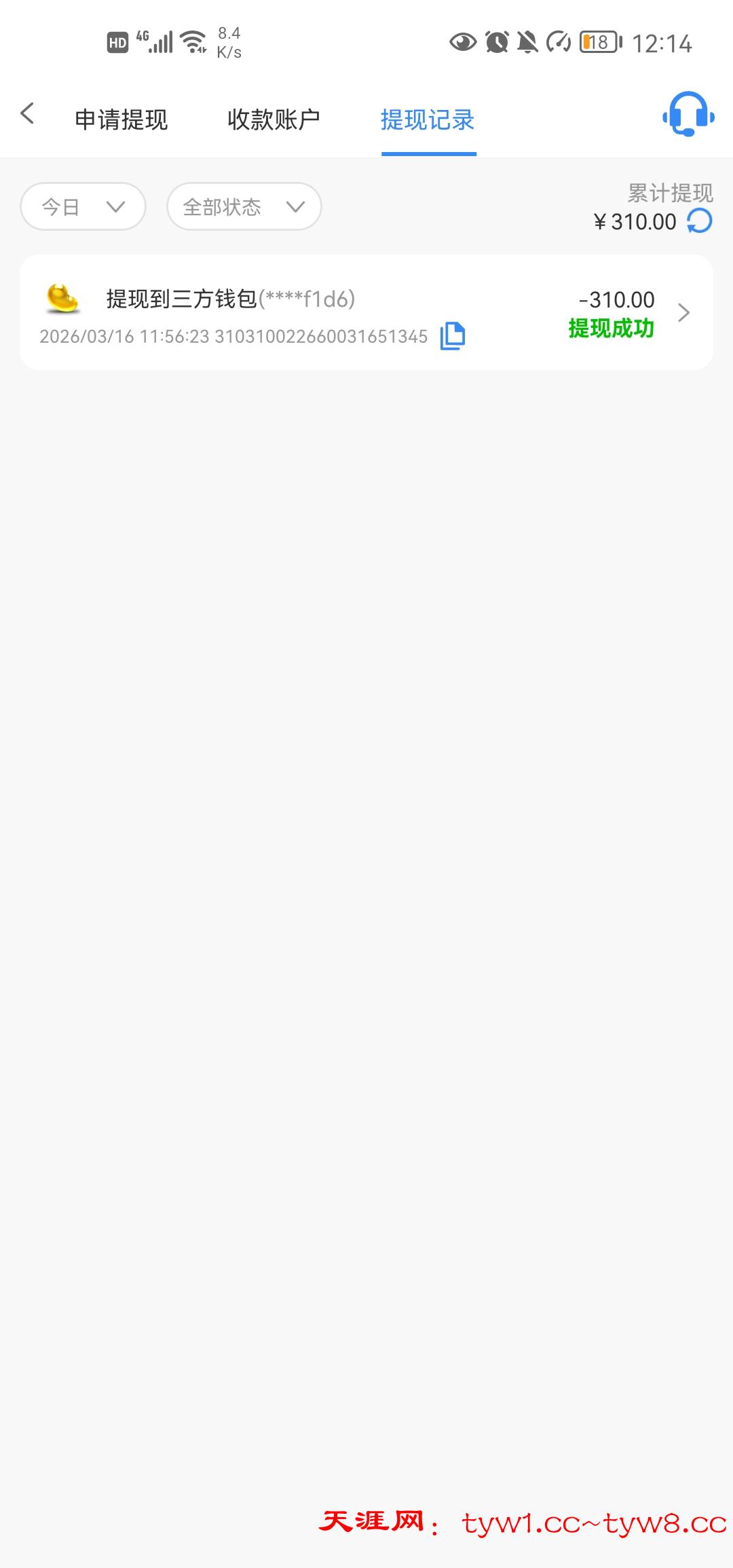 感觉要黑了,要充值才能领取,我充值了领了31打到了310,提现到钱能钱包,提现20分了还没到账