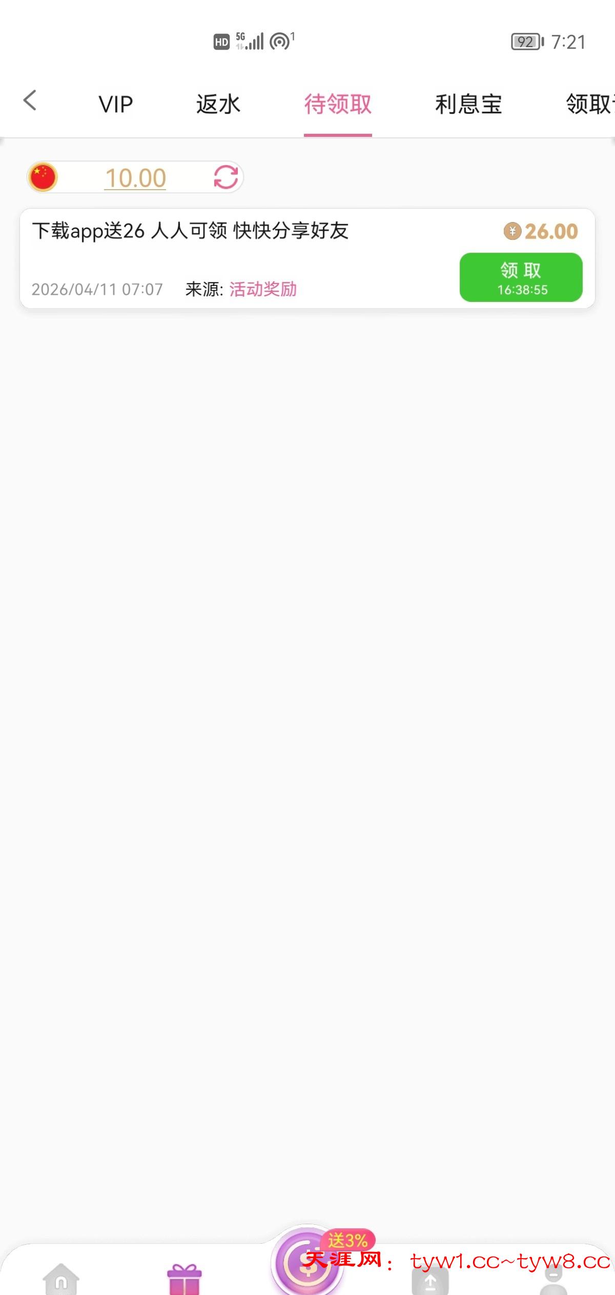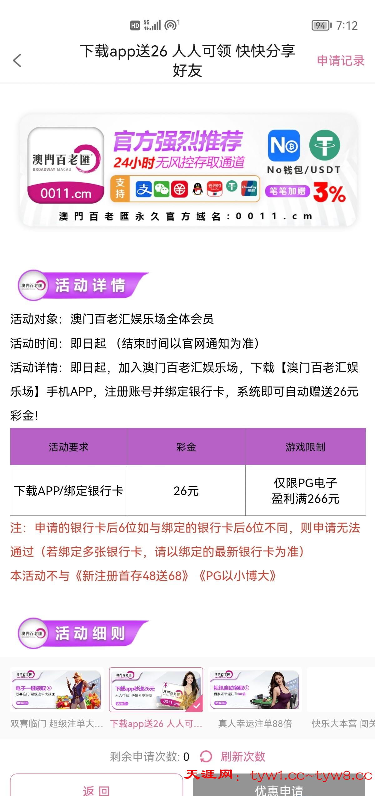 下载注册以后综合活动一直往下滑就看到了这个需要充值任意一笔我存了10申请到了0011.cm