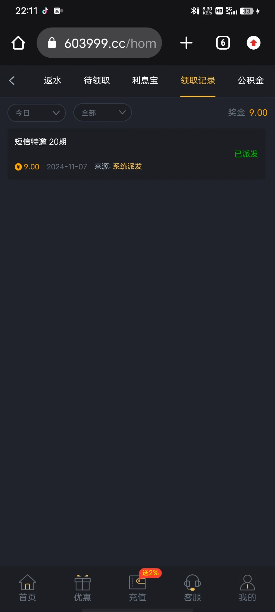 【PG603】注册自助送9